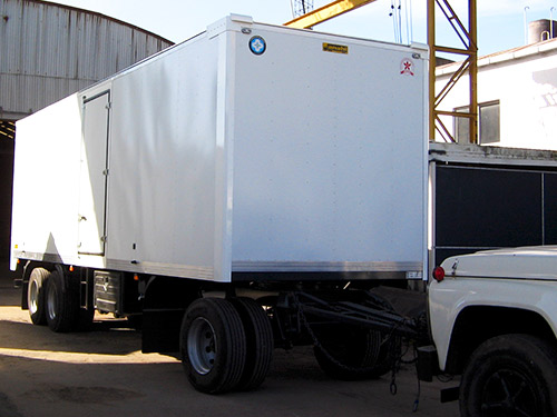 - PISO en chapa de 1/8 antideslizante semilla de melón con apoyo de placas de fenólico para servicio pesado y con alto número de travesaños (palomas) con ubicación racionalizada (más juntos hacia culata). Incluye zócalo antigolpe de 30 cm en todo el perímetro. Opcional piso inoxidable o plástico.